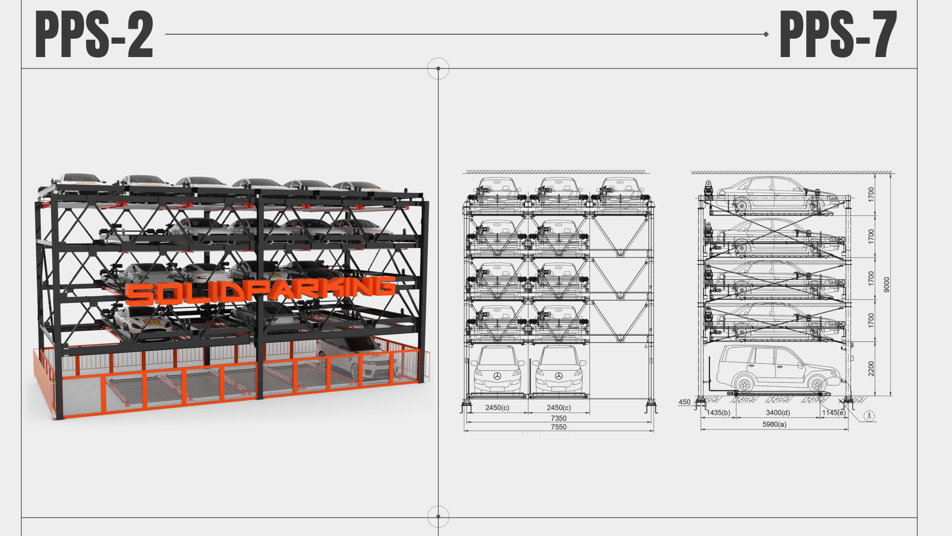 With SolidParking’s PPS-2 to PPS-7 series, you can multiply parking capacity by stacking cars up to 6 or even 7 levels high, with no ramps, no drive aisles, and no wasted space.