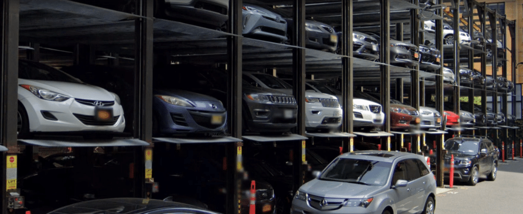 In Manhattan’s 92 Livingston St. mechanical garage, SolidParking’s MPS-4 stackers enabled a tight urban lot to accommodate dozens of cars, slashing construction time and costs.